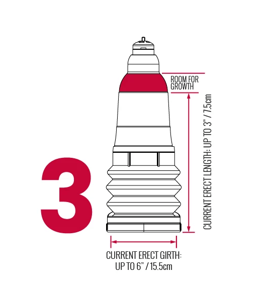 The HydroXtreme3 is the ideal size penis pump for men starting out at lengths of 1 to 3 inches with a maximum girth of 6.5 inches (2.07 inches diameter)
